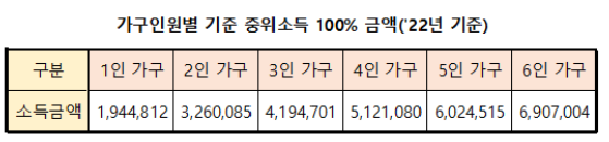 연소득 2,400만원 이하, 기준 중위소득 100%이하