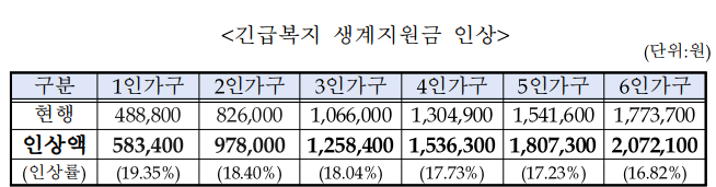 (일반재산) 현금화가 곤란한 실거주 주택 1개소(본인 또는 동거가족 명의의 주택(임차 포함))에 대해 공제할 수 있도록 공제한도액을 신설하여 긴급복지 생계지원금을 지급할 수 있는 일반재산 금액 기준을 인상합니다.