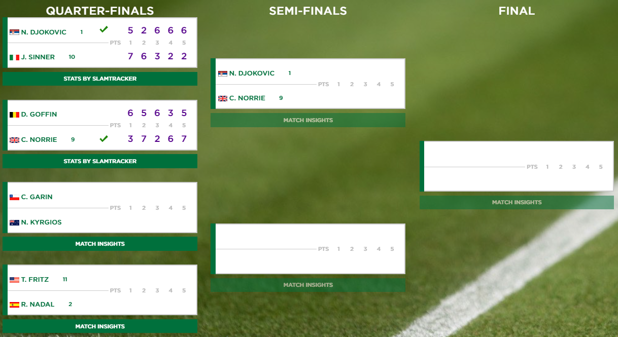 7월 5일 ~ 6일 - 남녀 단식 8강