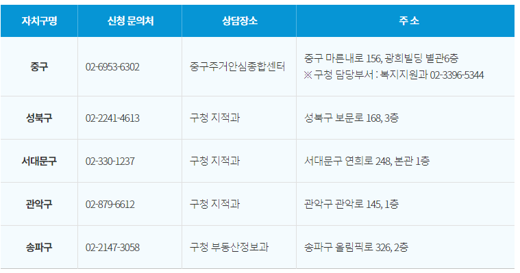 서울시 1인가구 포털 또는 전화(운영 자치구별 문의처)