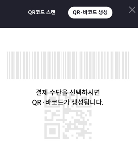 QR코드를 스캔을 직접하시거나, 아니면 QR 바코드생성을 통하여 바코드나 QR을 직접 보여드려 결제를 하실 수 있습니다.