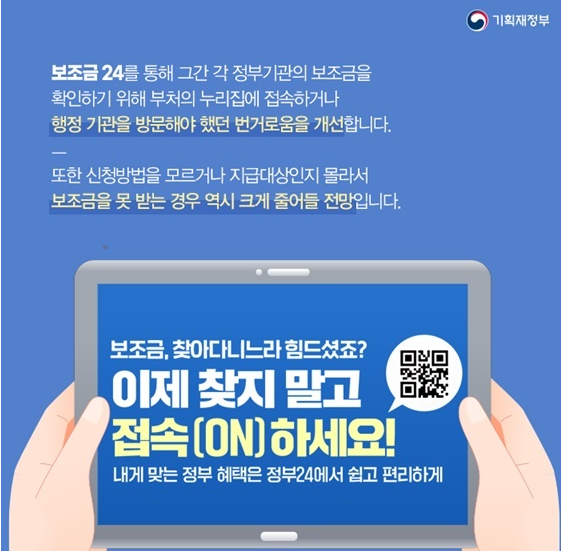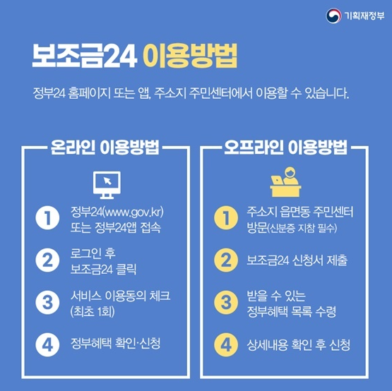 정부24 홈페이지 또는 앱, 주소지 주민센터에서 이용할 수 있습니다. 정부가 국가보조금 혜택을 알려주는 '보조금24' 서비스의 대상을 지방자치단체의 보조금으로 확대합니다.