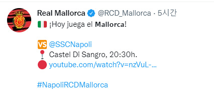 쿠팡플레이나 스포티비에서는 따로 중계를 하지 않습니다. 이제 마요르카와 나폴리 중계를 보는 방법은 마요르카 공식 유튜브를 활용하는 것입니다. 중계는 8월 1일 월요일 새벽 3시 30분 시청이 가능합니다.