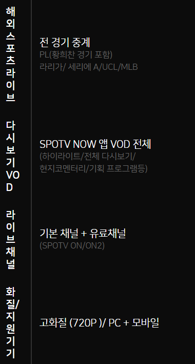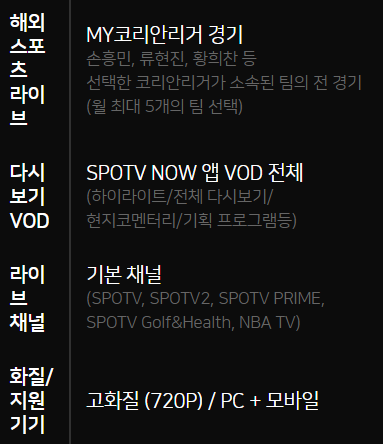 SPOTV NOW는 SPOTV의 OTT 서비스로 스포츠 콘텐츠를 중심으로 제공하고 있으며 회원가입을 해야 이용이 가능합니다. 프리미어리그 전 경기를 생중계 뿐 아니라 프리시즌 경기, 야구, 테니스 ATP 경기