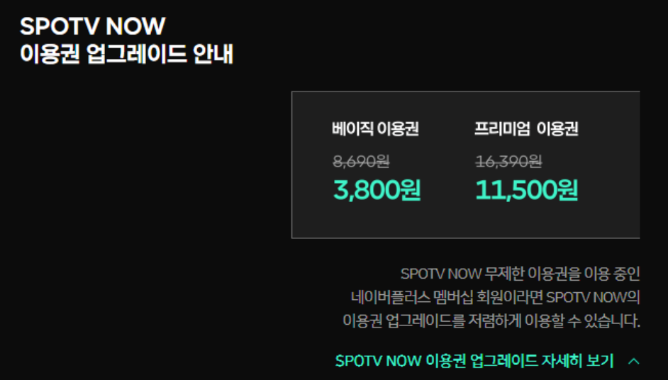 스포티비를 가장 저렴하게 이용 하는 방법은 스포티비 나우 (SPOTV NOW)를 선택하며, 7900원, 14900원의 요금제가 아닌 네이버 플러스 멤버십을 활용하는 것입니다. 네이버 플러스 멤버십을 이용하면 가장 저렴한 4900원에 시청이 가능합니다. 또한 네이버페이 포인트 최대 5% 적립, 그 외 다양한 디지털 콘텐츠 이용권 등 그 외 다양한 혜택을 누릴 수 있습니다.