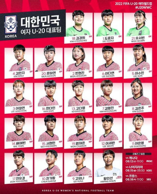 2022 FIFA 여자 U-20 월드컵 한국 대표팀 경기일정 및 중계방송
