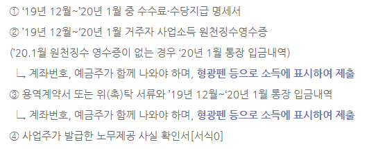 ↳ 증빙서류(‘19.12~’20.1월 중 소득자료, 택1)
