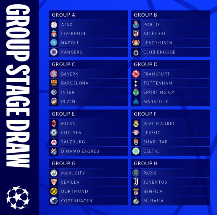 그룹 B : FC 포르투, AT 마드리드, 레버쿠젠, 클뤼프 브뤼헤
