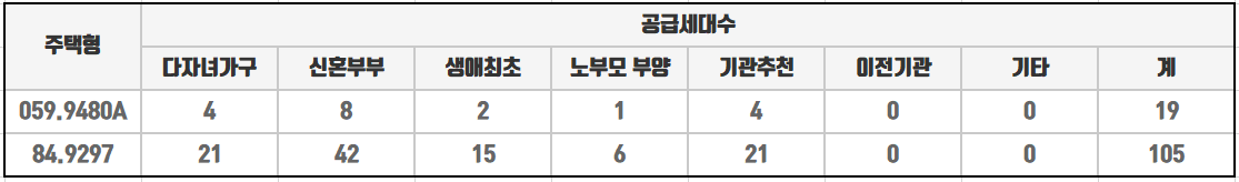 특별공급세대수는 아래 표를 참고해주세요!