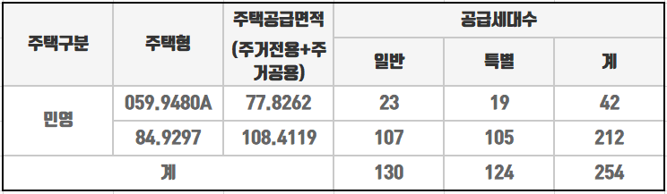 전용면적 59·84㎡, 총 834가구 중 254가구가 일반에 분양됩니다.