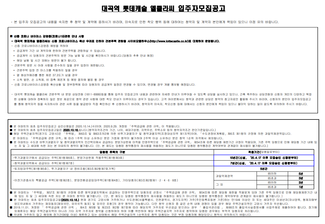▼대곡역 롯데캐슬 엘클라씨 입주자 모집 공고문 첨부