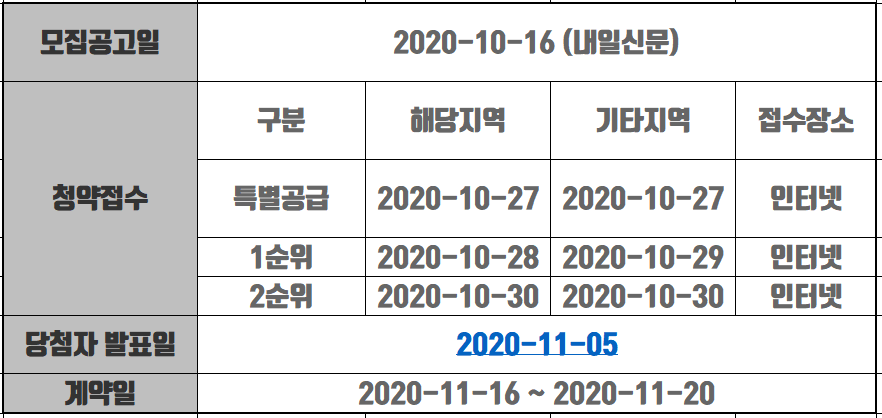 당첨자 발표는 11월 5일, 정당계약은 11월 16~20일일 진행됩니다.