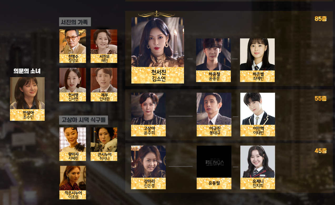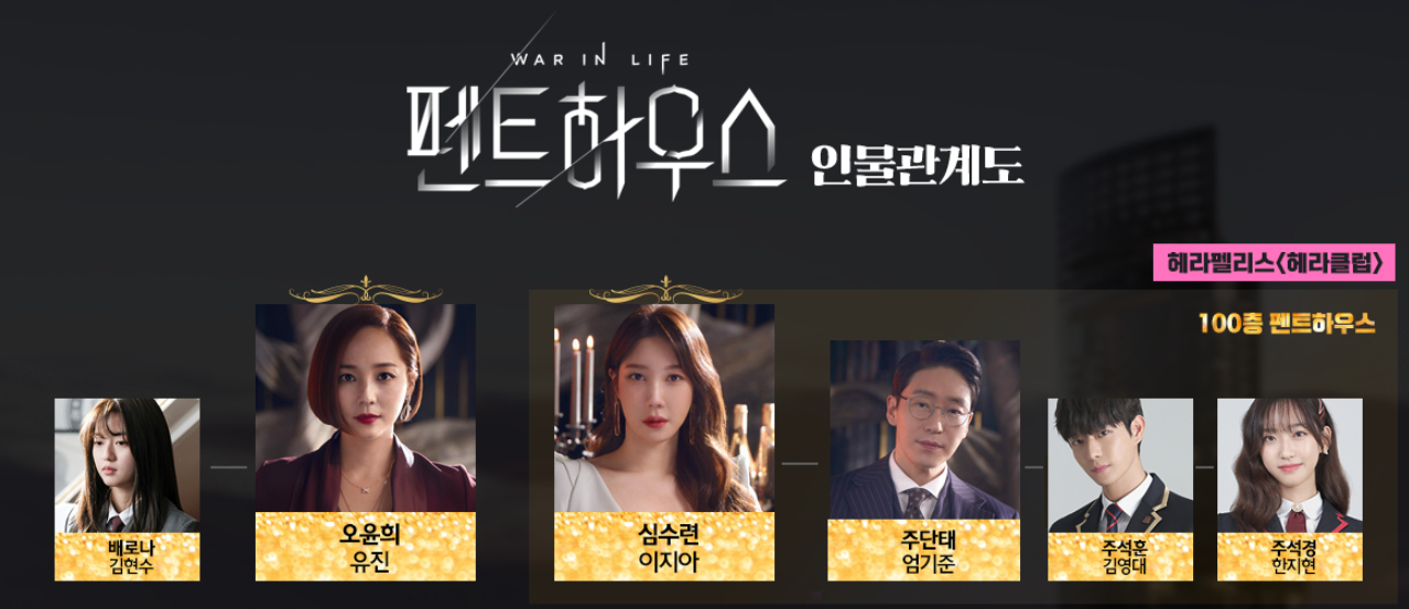 지금부터 드라마 펜트하우스의 등장인물과 관계도를 살펴보도록 하겠습니다.